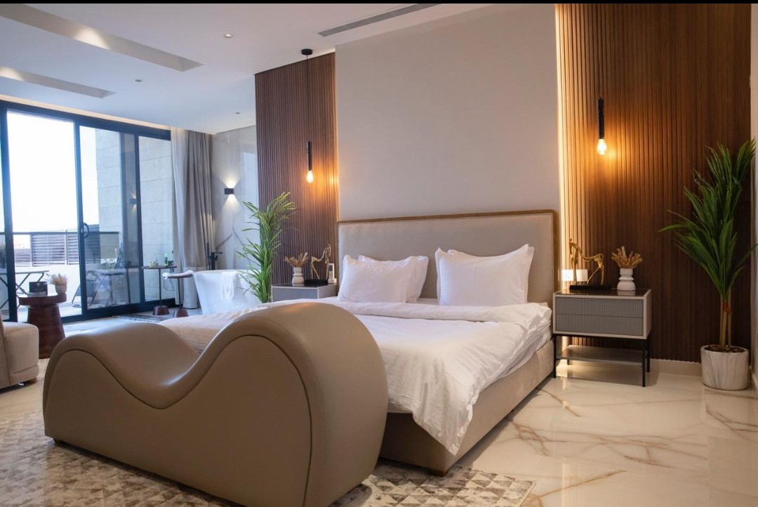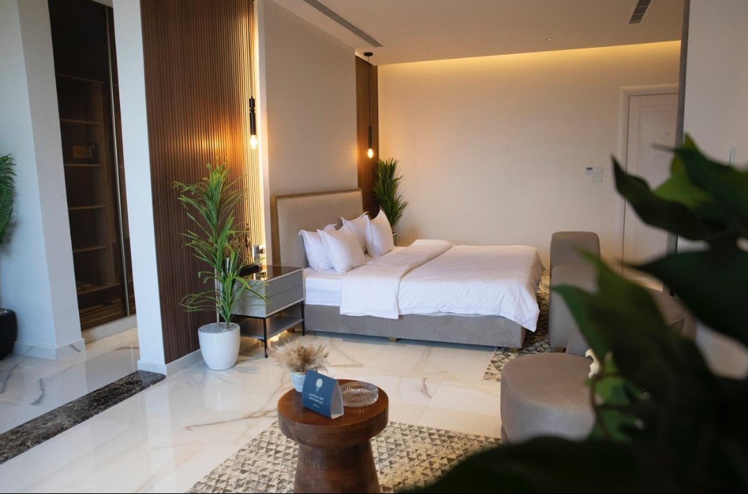 تصميم يجمع بين بساطة الرفاهية وأناقة التفاصيل، حيث تحتضنك هذه الوحدة الفندقية لتشعر وكأنك في منزلك، بإضاءة هادئة، أسِرّة مريحة، ولمسات فنية تضفي على المكان سكينة فاخرة.