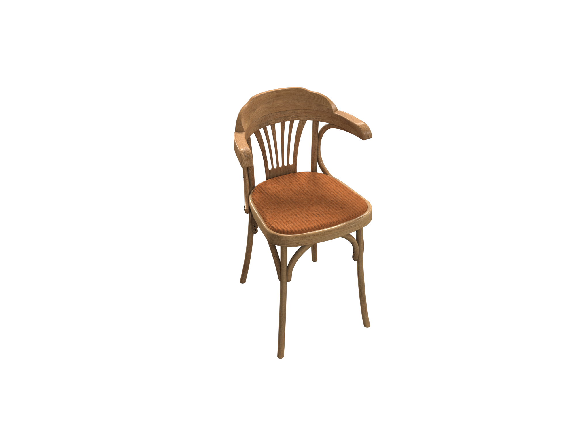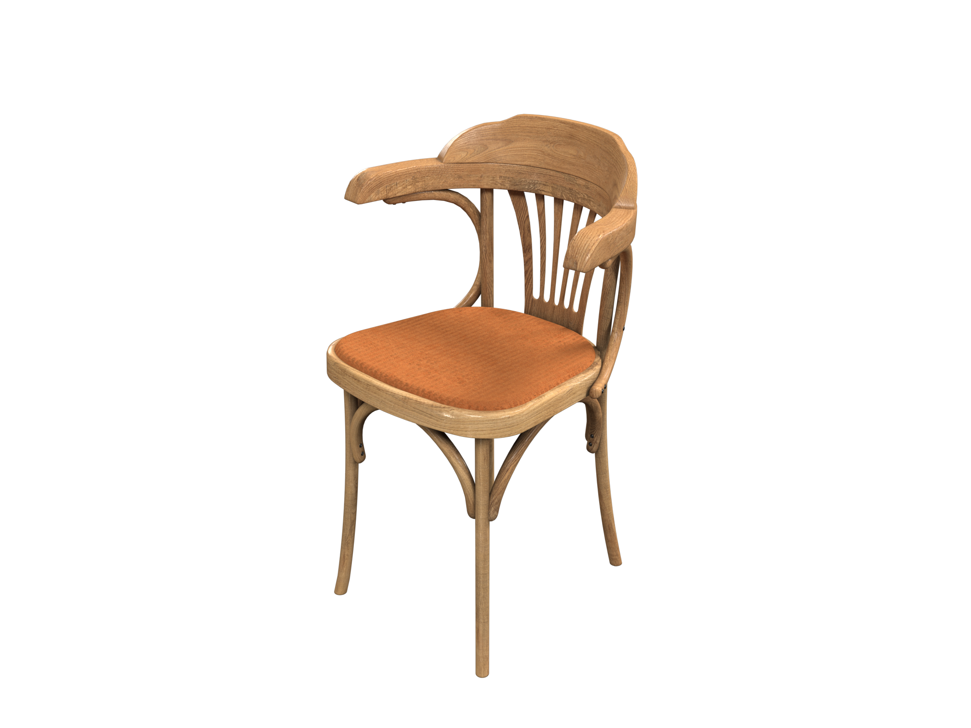 كرسي بطابع شعبي يجمع بين البساطة والأصالة. تصميمه مستوحى من الكراسي الخشبية التقليدية مع لمسة فنية في انحناءات الظهر والمساند الجانبية. الإطار مصنوع من خشب الزان الطبيعي الممشّط بلمعة خفيفة، والمقعد مغطى بجلد بدرجة الكراميل الدافئة، مما يمنحه مظهرًا تراثيًا أنيقًا يناسب المقاهي والمجالس ذات الطابع الشعبي العصري.